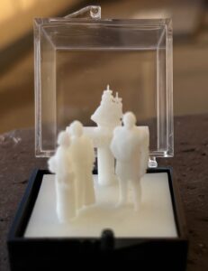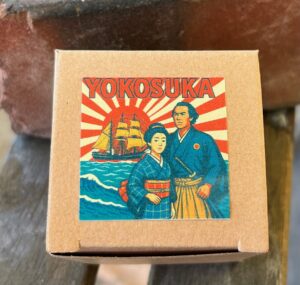 後ろに「YOKOSUKA」のロゴプレートと咸臨丸をイメージした帆船